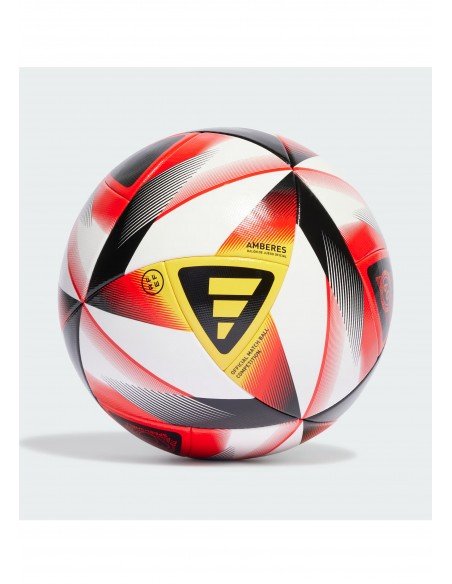 Покажите свою любовь к испанскому футболу. Этот мяч RFEF Amberes Competition, покрытый текстурой под кожу, повторяет яркий дизайн официального мяча adidas, используемого в клубных турнирах Испании. Бесшовная конструкция и сертификат FIFA Quality Pro обеспечивают точность и предсказуемость в игре. Бутиловая камера гарантирует, что мяч всегда готов к действию.
